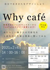 令和2年度のWhy Cafeは、あたらしい働き方の可能性を先輩公務員お二人から、観光×妄想、農業×妄想といった視点よりお話しをお伺いします。